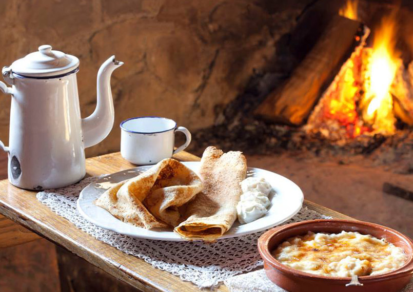 Pote con compango. Picadillo. Tortos con revuelto de morcilla.