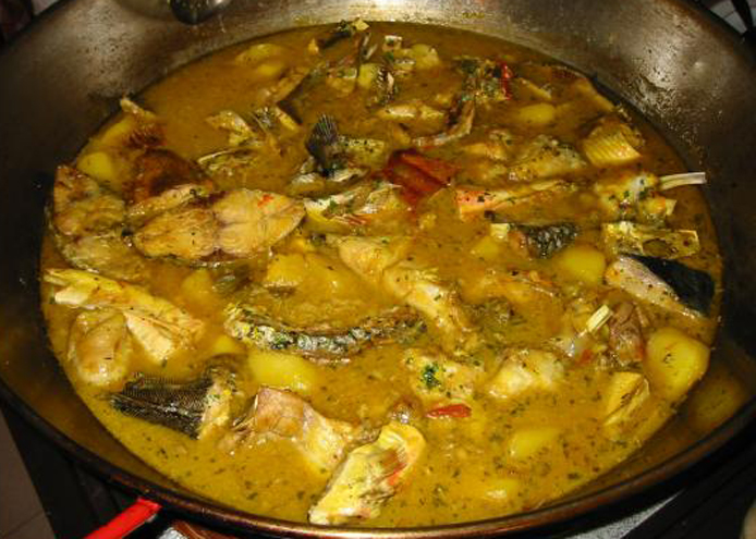Paellas de pescado. Marisco. Guiso de pez.